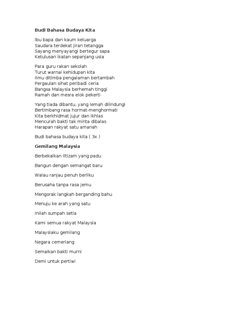 Lirik Lagu Sejahtera Malaysia Pdf