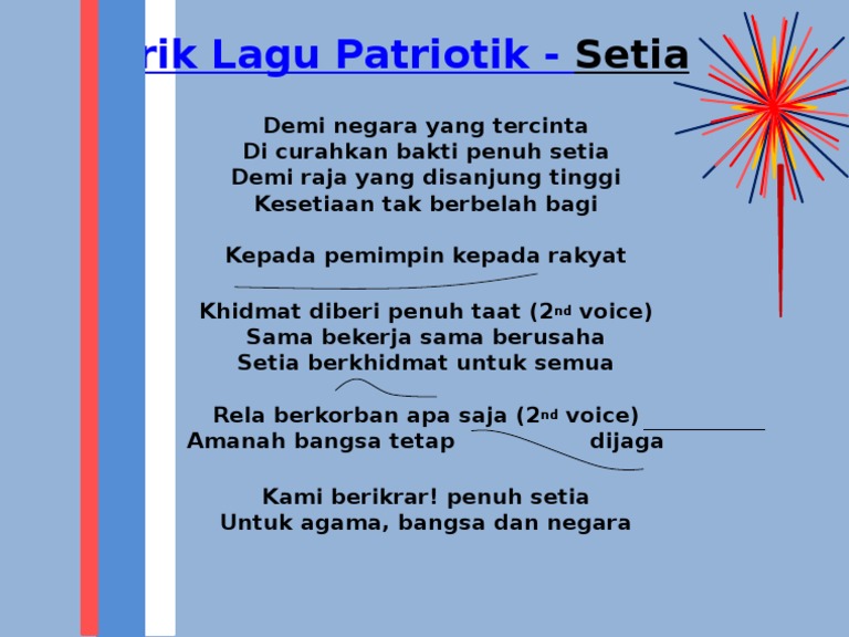 Uzivatel latar expressway na twitteru jom kita hayati lirik lagu patriotik setia latarexpressway latarsambutmerdeka. 31 ogos setia dirgahayu tanahair ku keranamu malaysia putra putri sejahtera malaysia tanah pusaka warisan wawasan 2020 tanah pusaka jalur gemilang by ariq rozaili in. Setia berkhidmat untuk semua.